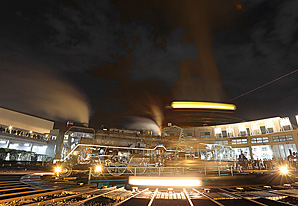 転車台に乗って回転している蒸気機関車を如何に撮るか悩んだ挙げ句に とある美術展で観た メリーゴーランド の作品を参考にして自分なりに アレンジ を加え作画しました。 未だ詰めが甘いですが動いている雰囲気を少しでも表現できたと思っております。