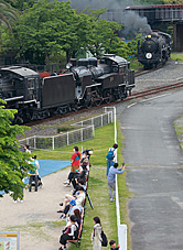 今までにも屋外に静態機を展示することが有りましたが 此の様な ど派手な イベント は久しぶりです。 「 SL スチーム号 」 の隣に C62 1 を展示するとの情報を得ましたので C62 同士 の並びを撮りに来ました。 C62 1 だけでなく C55 1 と C1164 も一緒に展示されています。